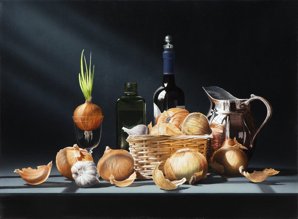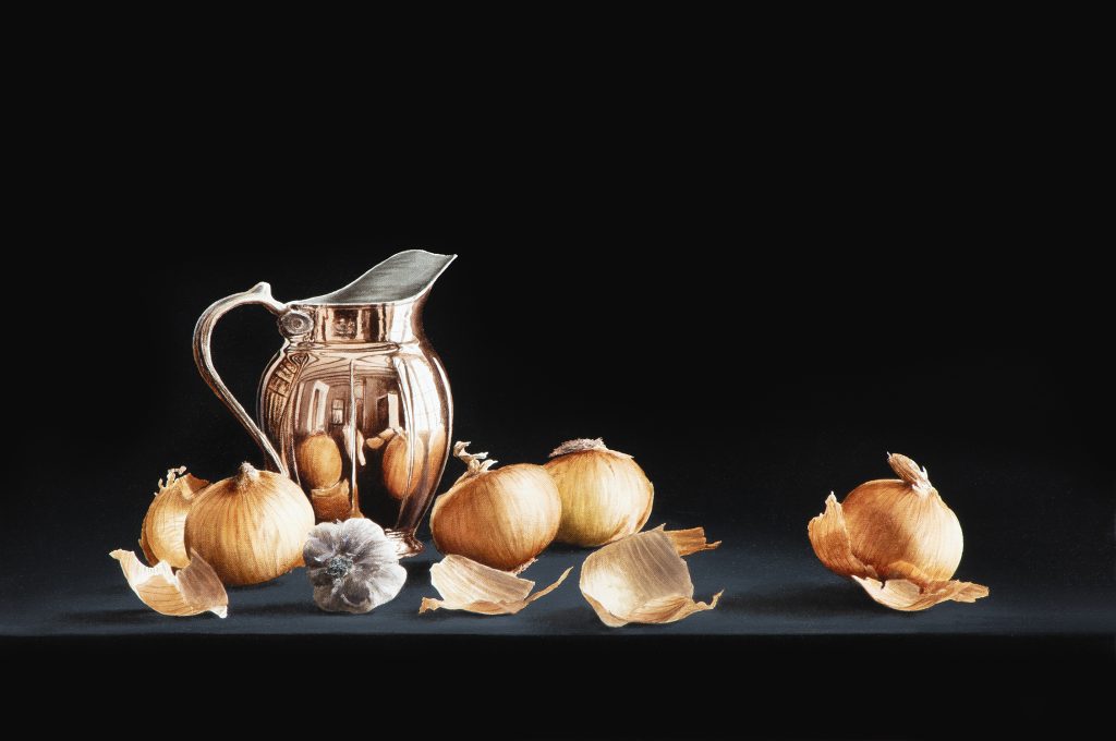 Still-Life With Copper Pitcher Onions And Wine 22×30